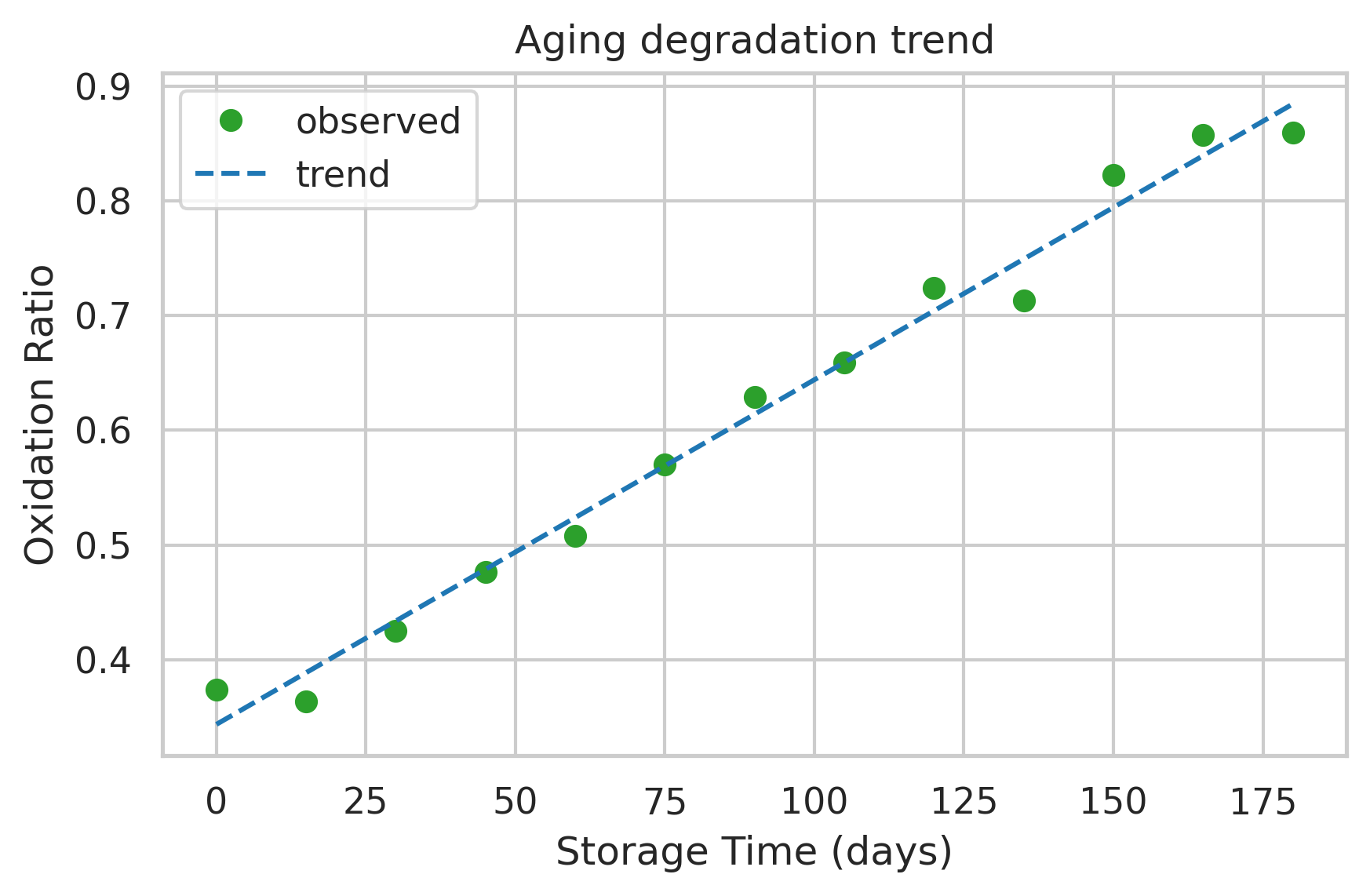 Goal: Model degradation trajectories over storage time (days/months) and estimate remaining shelf-life.